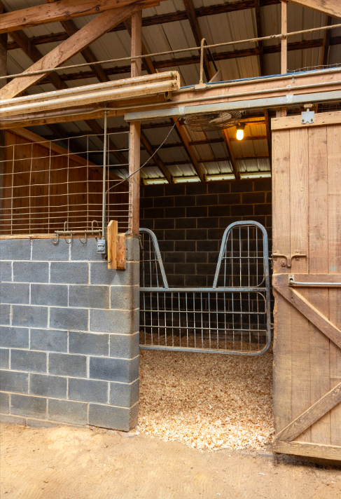 - 12’x12’ stalls with automatic waterers and fans